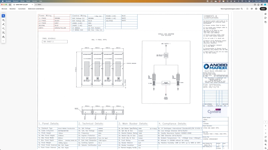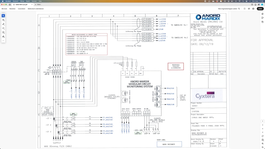 Voorzien van 1x een 250 ampere 4-polige instelbare vermogensautomaat als hoofdbeveiliging en afgaande velden in de vorm van een ABB S401 M C32 NP automaat.