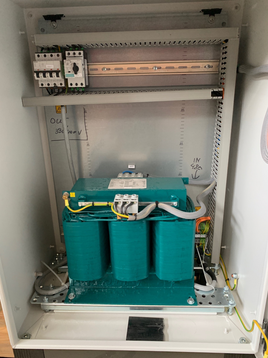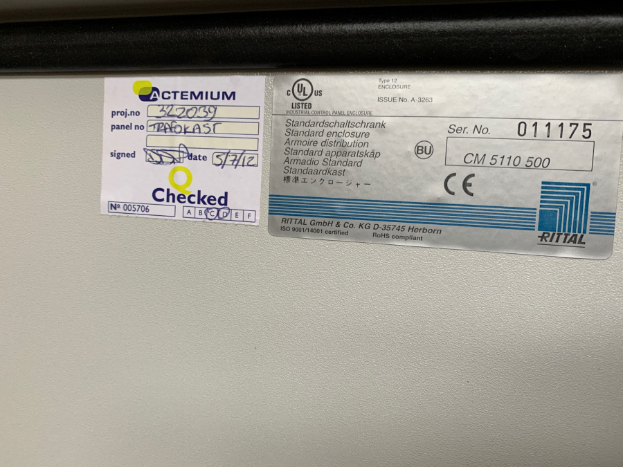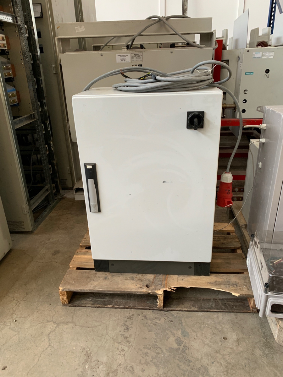Gemonteerd in stevige stalen kast met hoofdschakelaar aan de buitenkant.