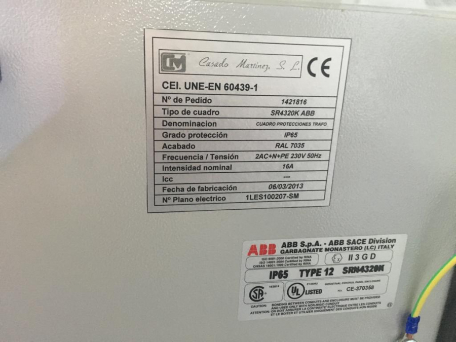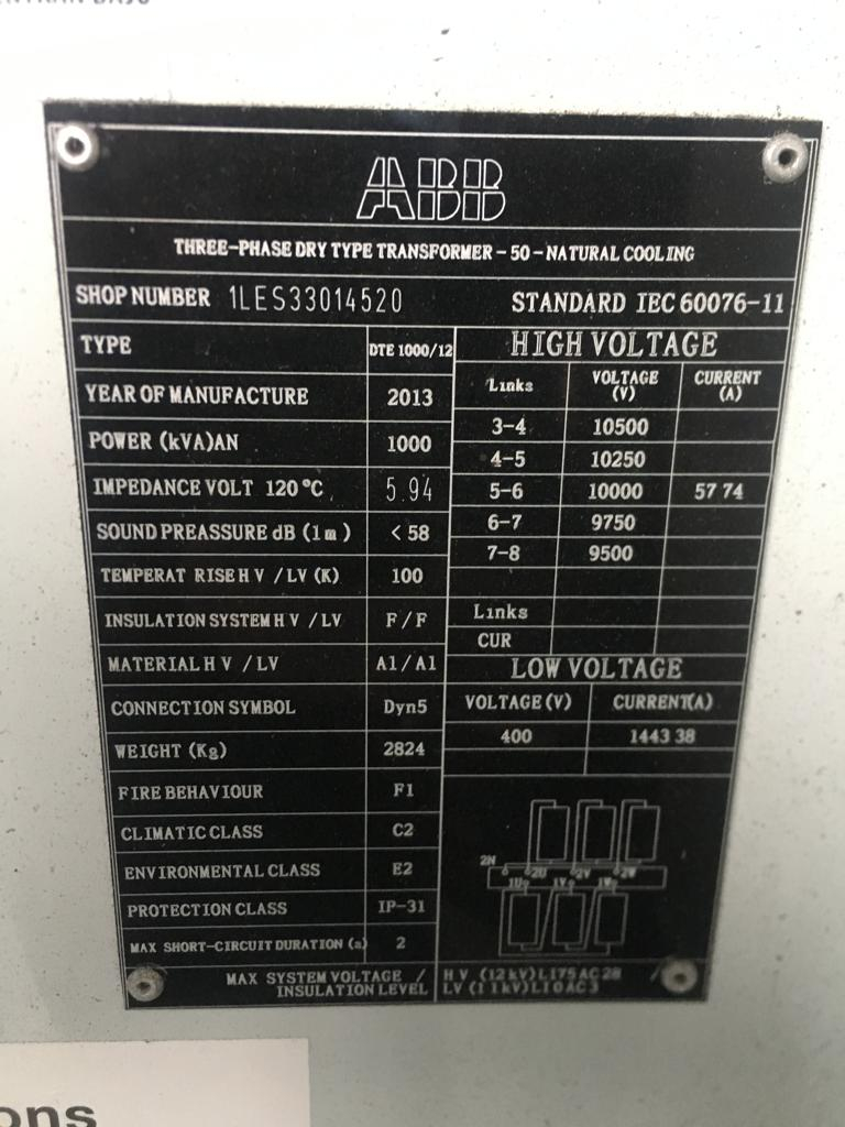 Vermogen 1000 KVA bij 400 Volt 50Hz.
