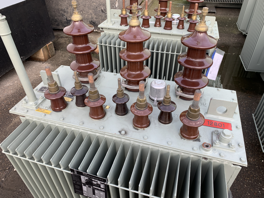 Oliegevulde transformator gebouwd door IEO. Dit betreft een nieuwe en ongebruikte transformator.