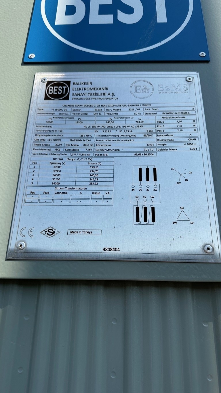 2 identieke power transformatoren aangeboden. Geschikt voor buitenopstelling, voorzien van olie conservator tanks
