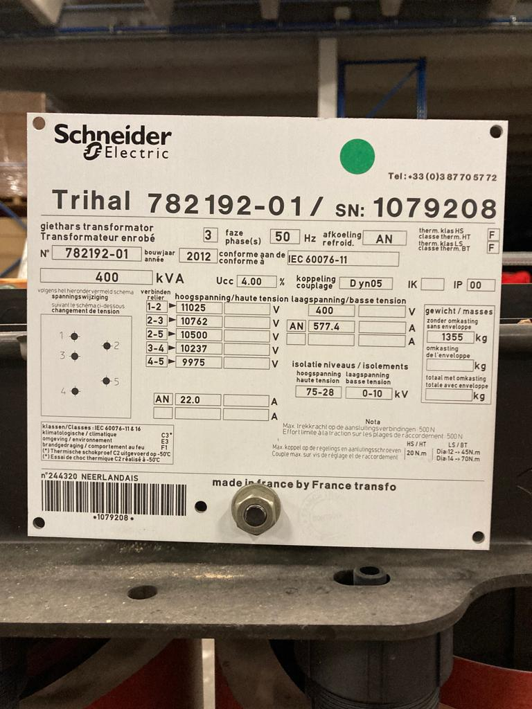 Vermogen 400 kVA bij 400 Volt 50Hz.
