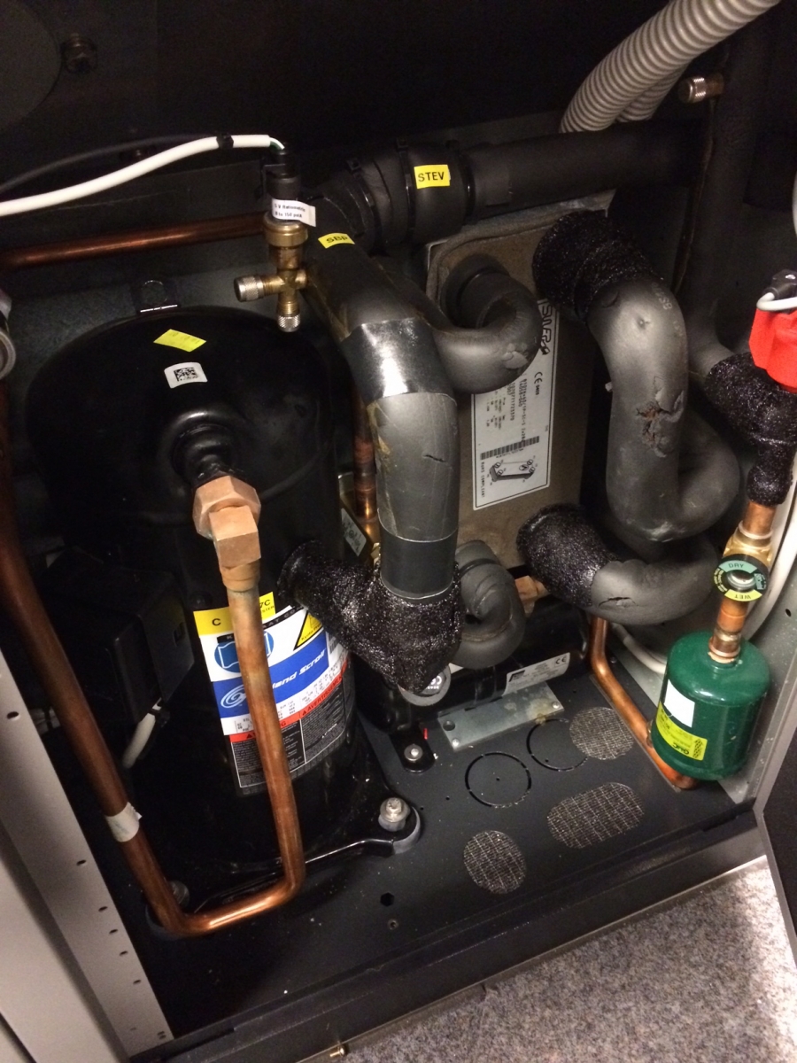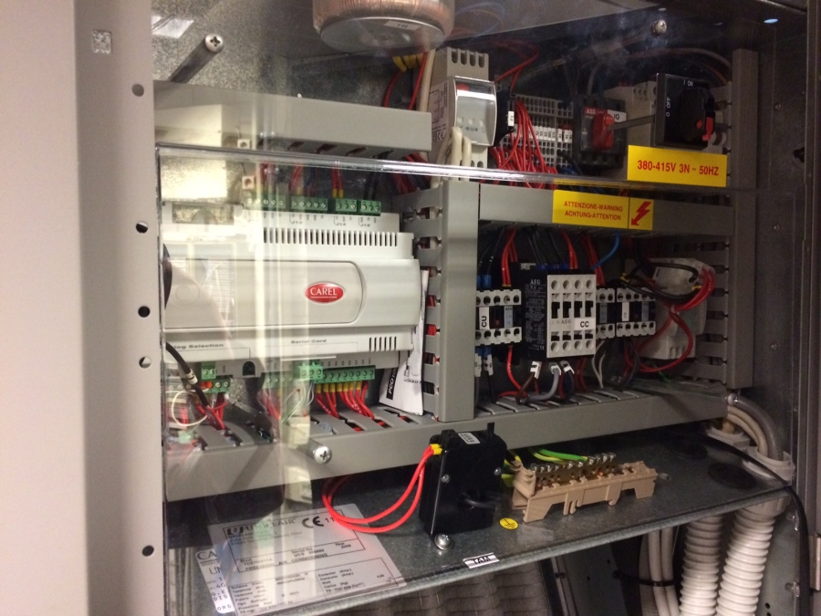 Voorzien van 1+1 compressoren, 2 circuit en 2 koudeblokken ( 1x DX direct expansion en 1x indirect free cooling dmv. water/glycol ).