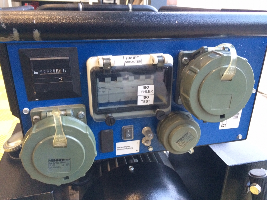 Voorzien van 1x 230V schuko aansluiting, 1x 230V 32 Ampere CEE-FORM aansluiting en 1x 400V 32 Ampere CEE-FORM aansluiting.