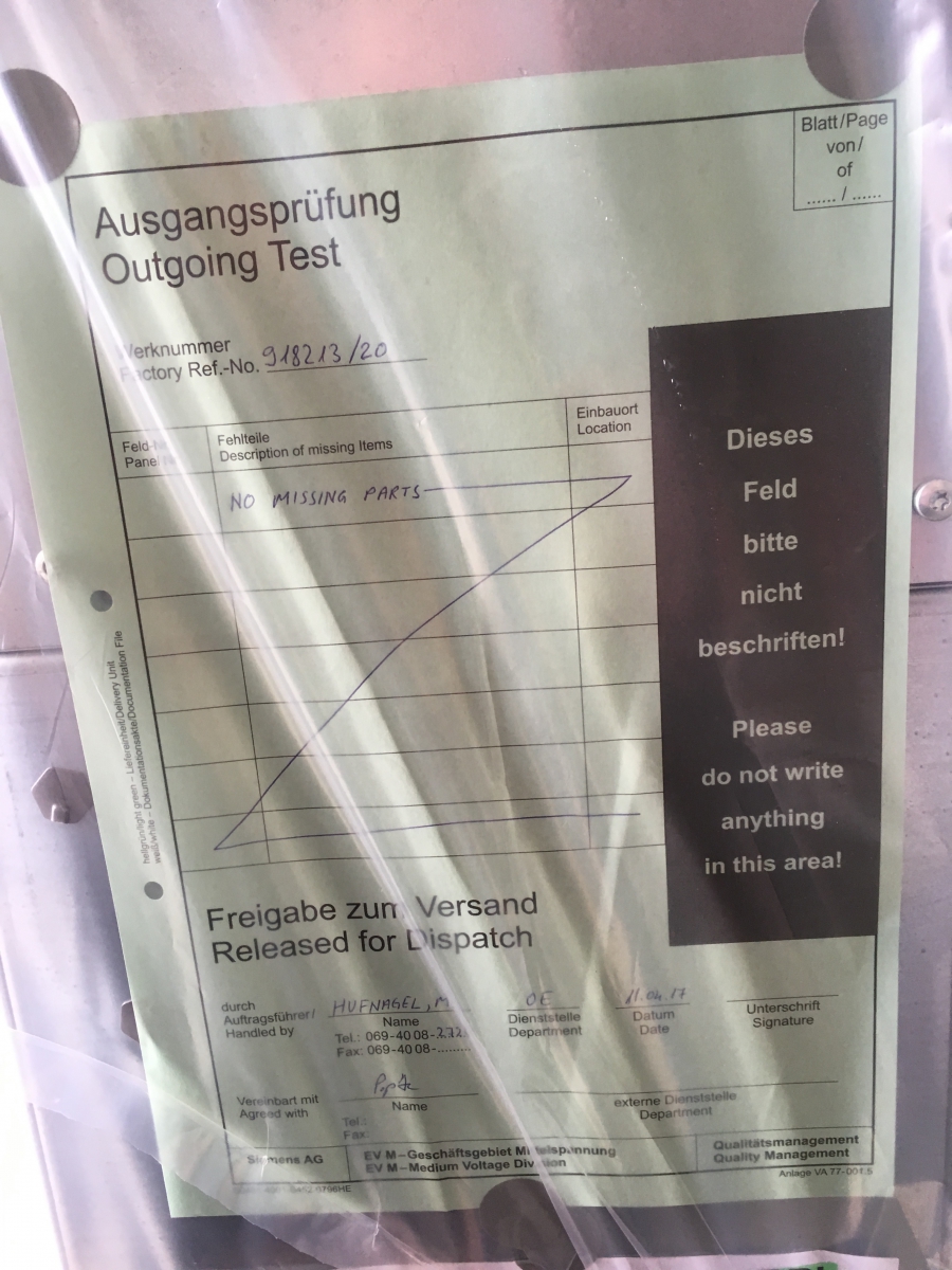 1x Vacuum vermogenschakelaar 630 A (transformatorveld)